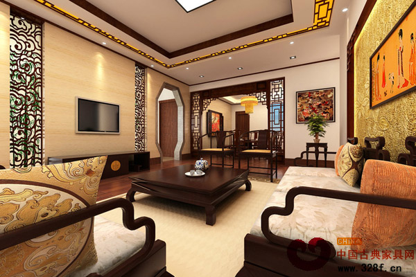 客廳中畫卷里是炎黃子孫特有的奢華情調(diào),描摹出優(yōu)美的中華圖騰。