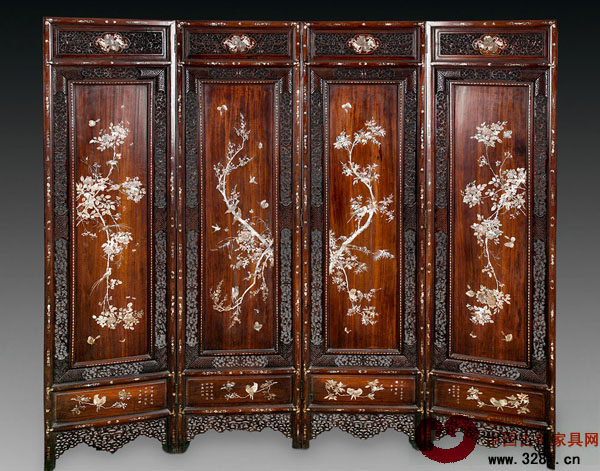 朝代更迭,帶動(dòng)屏風(fēng)的發(fā)展,屏風(fēng)的使用范圍逐漸廣泛。漢唐時(shí)期,大戶人家凡廳堂必設(shè)屏風(fēng)。屏風(fēng)的作用也由遮蔽、擋風(fēng)演變?yōu)榻k麗多彩的室內(nèi)裝飾藝術(shù)品。明清時(shí)期,屏風(fēng)文化達(dá)至高峰。《天水冰山錄》記載,明代奸臣嚴(yán)嵩的抄家物里,竟有大小各式屏風(fēng)389件。人們今天在北京故宮、頤和園等處看到的大量屏風(fēng)藏品,就是明清時(shí)期屏風(fēng)中的精華。中國(guó)古典名著《紅樓夢(mèng)》中有多處對(duì)屏風(fēng)的描寫。如第七十一回寫到賈母80大壽時(shí)賈母問:前兒這些人家送禮來的共有幾家有圍屏?鳳姐兒道:共有16家有圍屏,一面是泥金“百壽圖”的,是頭等的。還有大紅緞子緙絲屏風(fēng)“滿床笏”。