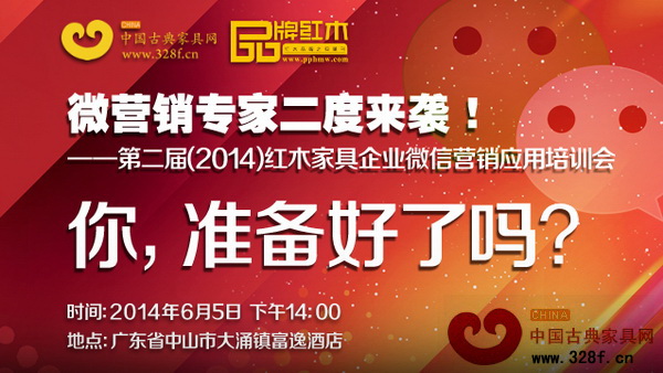 第二屆(2014)紅木家具企業(yè)微信營(yíng)銷(xiāo)應(yīng)用培訓(xùn)會(huì)6月5日盛大開(kāi)講