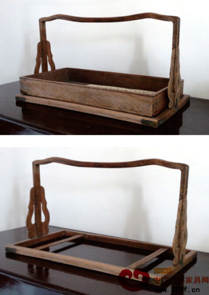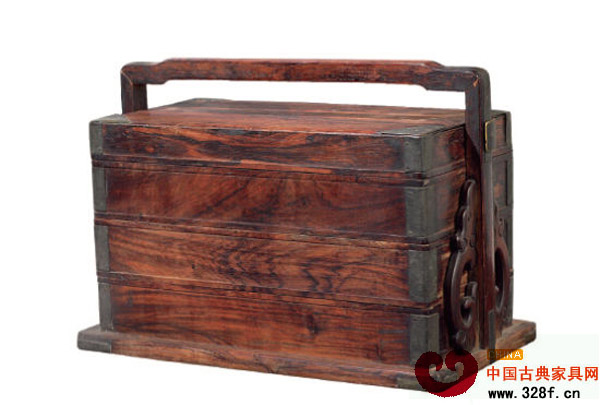 那天,沒有找到想要的,牛飲了一大口茶水便坐到朋友家的木搖椅上,悠閑地看著其他幾個(gè)人挑這挑那。吔!床下塞著一木提盒,呼之欲出。擦拭、談價(jià)、成交,前后不過幾分鐘。朋友當(dāng)時(shí)或許對(duì)木頭研究得還不多,只是說線起得好,鄉(xiāng)下收的,剝點(diǎn)皮(加點(diǎn)價(jià))就賣。我因?yàn)橹暗氖詹亻啔v,便成就了這一剎那間的艷遇。