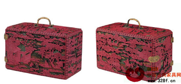 其實(shí)提盒這種樣式經(jīng)典得很,宋畫上就有。大者兩人抬一箱,小點(diǎn)一人挑兩箱,再小點(diǎn)就是提飯菜的大提盒,再小點(diǎn)就是如這件裝筆墨紙硯的文具提盒了,還有更小的裝小雜件的。明萬歷刊本《琵琶記》中《才俊登程》一圖,書童挑的考籃就是裝筆墨紙硯的提盒。