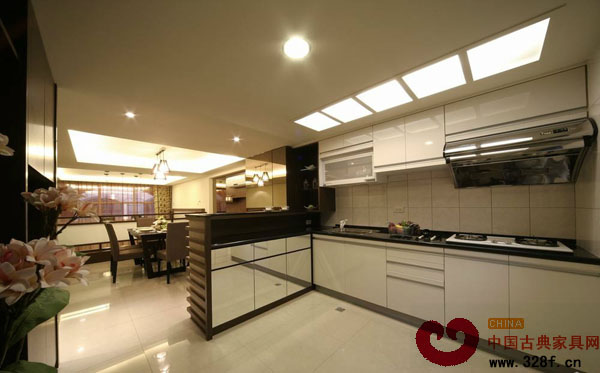 廚房-吧臺(tái)一方面能夠成為空間的界定,也增加了廚房空間的收納容量。
