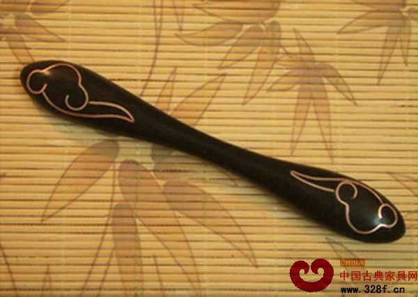 嵌銅線是用厚3毫米左右的銅板裁成窄條,立圈嵌在家具上,使之高出木材表面2~3毫米,起到陽線的裝飾效果。此法多與景泰藍(lán)等工藝配合使用,常見于清代宮廷家具中的紫檀家具。