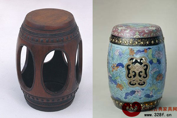 [摘要]坐墩屬于高坐具椅凳類,歷來多為木腔鼓造型,平頂微凸,弧腹中空,外壁上下邊沿各飾一周鼓釘,故又稱鼓墩。