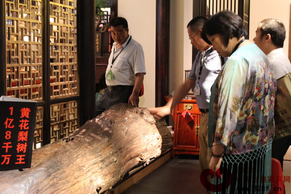 戴為紅木展館內(nèi)價(jià)值1.8億的海南黃花梨吸引了眾多參會(huì)者的眼球