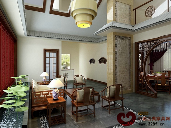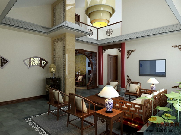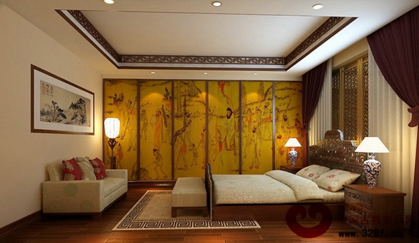 新中式風(fēng)格非常講究空間的層次感,在需要隔絕視線的地方,則使用中式的屏風(fēng)或窗欞、中式木門、工藝隔斷、簡(jiǎn)約化的中式“博古架”,通過這種新的分隔方式,單元式住宅就展現(xiàn)出中式家居的層次之美。再以一些簡(jiǎn)約的造型為基礎(chǔ),添加了中式元素,使整體空間感覺更加豐富,大而不空、厚而不重,有格調(diào)又不顯壓抑。 中式風(fēng)格的古色古香與現(xiàn)代風(fēng)格的簡(jiǎn)單素雅自然銜接,使生活的實(shí)用性和對(duì)傳統(tǒng)文化的追求同時(shí)得到了滿足。影視墻的造型簡(jiǎn)潔現(xiàn)代,卻在醒目位置飾以中式書法,這種絕妙的組合給人以強(qiáng)烈的視覺意志力,成為時(shí)尚與古典的柔媚結(jié)合。 居室在色彩方面秉承了傳統(tǒng)古典風(fēng)格的典雅和華貴,但與之不同的是加入了很多現(xiàn)代元素,呈現(xiàn)著時(shí)尚的特征。在配飾的選擇方面更為簡(jiǎn)潔,少了許多奢華的裝飾,更加流暢地表達(dá)出傳統(tǒng)文化中的精髓。