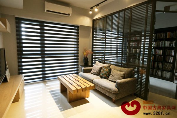 客廳與書房場域則以穿透的方式,以鐵件及清玻璃作為隔屏,讓視覺景深延伸,形塑空間的開闊感;此外,設(shè)計師也為書房構(gòu)置深色木百葉,依照屋主的需求,「形隨機(jī)能」去調(diào)整空間的隱私性及機(jī)能性。在材質(zhì)使用上,則運用大量的木質(zhì)元素,來營造舒適溫馨的環(huán)境。