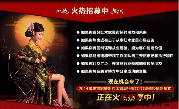 [摘要]日,紅木家具十大品牌---福建御典紅木家具正式面向全國誠邀渠道經(jīng)營商、裝修公司合作伙伴和區(qū)域獨家代理商,這意味著紅木家具行業(yè)開始由傳統(tǒng)的分銷模式轉(zhuǎn)向以渠道經(jīng)營商為主的先進經(jīng)營模式。