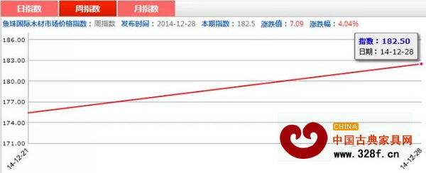 12月24日-28日,紅木價格指數(shù)周指數(shù)走勢圖