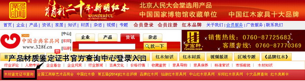 方法二:登錄中山市紅木古典家具學(xué)會(huì)官網(wǎng)進(jìn)入鑒定證書查詢登錄接口