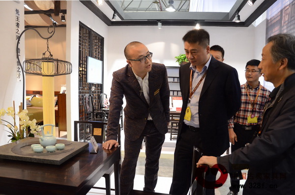 展會期間,東陽市市委副書記、市長朱建軍,副市長陳軍,東陽市紅木家具行業(yè)協(xié)會秘書長曹益民一行蒞臨展館參觀,卓木王紅木總經(jīng)理杜長江向領(lǐng)導(dǎo)們介紹卓木王紅木的產(chǎn)品理念,隨手翻開一張凳子的底面向嘉賓們展示卓木王紅木產(chǎn)品嚴(yán)絲合縫、表里如一的選材和工藝標(biāo)準(zhǔn)。