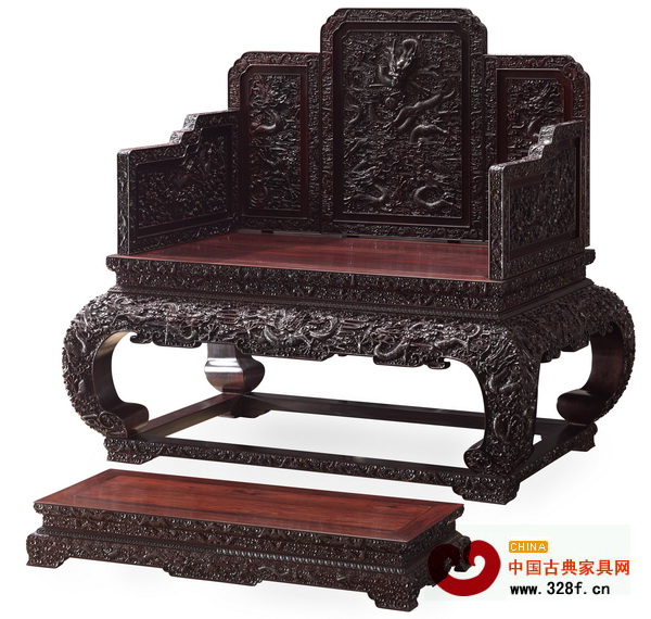 整個寶座氣勢恢宏、工藝精湛,為當世不可多得之精品。