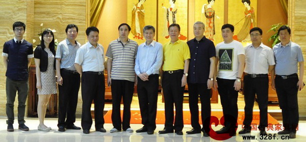 河南省新鄉(xiāng)市獲嘉縣縣委書記郭力銘(右四)率考察團(tuán)到國壽紅木參觀并合影