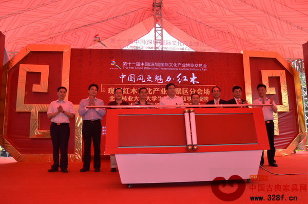 5月13上午,第十一屆中國(guó)(深圳)國(guó)際文化產(chǎn)業(yè)博覽會(huì)(以下簡(jiǎn)稱(chēng)文博會(huì))觀瀾紅木文化產(chǎn)業(yè)集聚區(qū)分會(huì)場(chǎng)開(kāi)幕式在深發(fā)紅木藝術(shù)體驗(yàn)館隆重舉行。來(lái)自全國(guó)促進(jìn)傳統(tǒng)文化發(fā)展工程手工藝制品研究開(kāi)發(fā)工作委員會(huì)、中國(guó)家具協(xié)會(huì)、深圳市市領(lǐng)導(dǎo)、龍華新區(qū)領(lǐng)導(dǎo)以及全國(guó)各地的政府、行業(yè)領(lǐng)導(dǎo)、紅木家具企業(yè)代表及深圳各界人士、媒體等數(shù)百人共同出席了本次活動(dòng)。