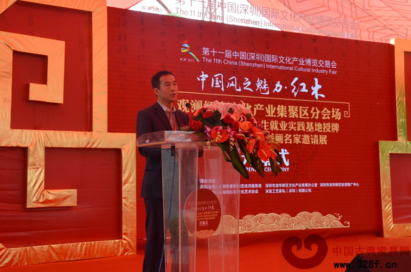 深圳市紅木文化藝術(shù)協(xié)會(huì)會(huì)長(zhǎng)、深發(fā)紅木董事長(zhǎng)張祝林致辭
