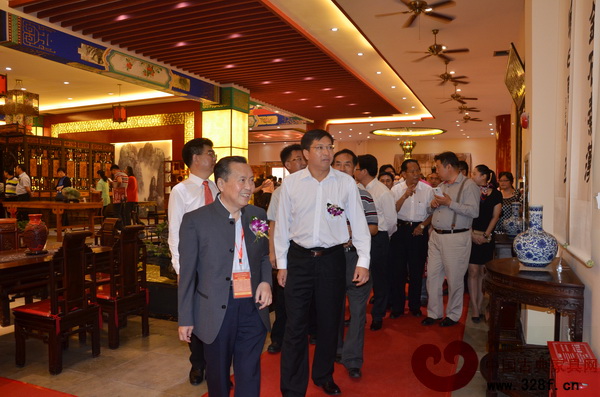 出席領(lǐng)導(dǎo)及嘉賓們?cè)陂_(kāi)幕式結(jié)束后參觀深發(fā)紅木藝術(shù)體驗(yàn)館