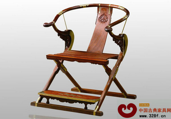 鼎盛時期的交椅主要是指在明代制作的交椅。交杌加上靠背就是交椅,有直后背和圓后背兩種。直背后交椅的靠背和燈掛椅相似,圓后背交椅的靠背和圈椅相似,宋代稱為“栲栳樣”,一般都是采用金屬飾件加固鏈接部位。交椅由交杌演變而來,交椅的構造比交杌復雜,其構成的部件也有所增加,主要有“椅圈”、“靠背板”、“椅面”、“椅足”、“角牙”、“踏床”等。為方便理解交椅的形制和結構,下面對圓后背交椅的各部件進行介紹。