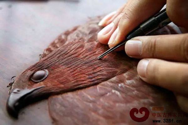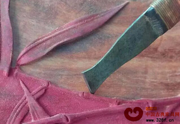 [摘要]完成一件絲翎檀雕作品,需要用到不同種類型號(hào)的刀具工具來(lái)完成作業(yè)。使用刀具的技法有橫刀、勒刀、剔刀、逐刀、奏刀,需靈活運(yùn)用。絲翎檀雕的刀法在實(shí)際運(yùn)用顯得尤其重要。