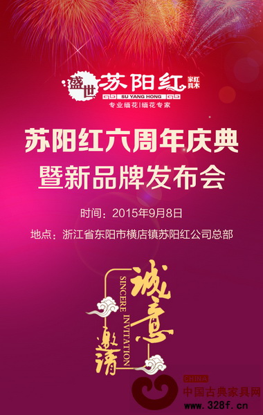 “盛世六周年,雅木共青春”。9月8日,東陽市蘇陽紅紅木家具有限公司(以下簡稱蘇陽紅)將于浙江省東陽市橫店蘇陽紅公司總部舉行蘇陽紅六周年慶典暨新品牌發(fā)布會。