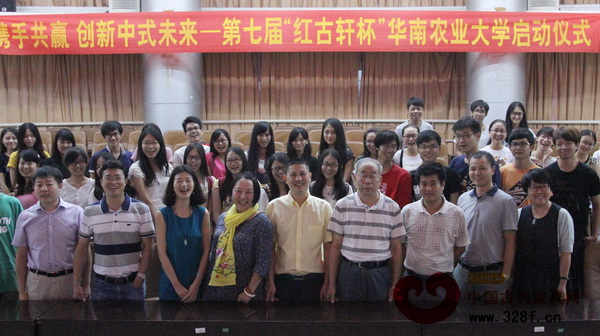 第七屆“紅古軒杯”新中式家具設(shè)計(jì)大賽走進(jìn)華南農(nóng)業(yè)大學(xué)(圖為紅古軒宣講團(tuán)與學(xué)子們合影)