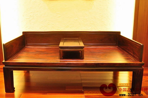 以伍氏大觀園該羅漢床為例,通體不飾一物,大木框架的形態(tài)特征是在“方”的框架下進(jìn)行的構(gòu)建穿插和攢框鑲板,并通過自身邊緣部位的“圓”的特征來抗衡整體框架的“方”的力量。該羅漢床,遠(yuǎn)觀方直端莊,棱角清晰,給人一種剛性的力度美,但是當(dāng)用手去親自觸摸時卻感到柔順光滑,細(xì)觀之,才發(fā)現(xiàn)直線是具有微小弧面的直線。視覺和觸覺的極大反差,不僅給觀賞者帶來別開洞天的新奇而且能夠使觀賞者產(chǎn)生無限的情趣。這就是明式家具的精髓所在:越簡單越美,越簡單越耐看,越簡單越有內(nèi)涵。