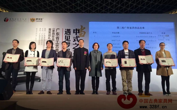 為進(jìn)一步促進(jìn)廣東省傳統(tǒng)工藝美術(shù)的保護(hù)和發(fā)展工作,推動(dòng)優(yōu)秀工藝家具作品的創(chuàng)作、收藏和宣傳展示,12月30日,“當(dāng)中式之王遇見(jiàn)羅浮宮”廣東省工藝美術(shù)(家具珍品·廣作精品)首發(fā)巡禮在位于中國(guó)家具之都樂(lè)從的羅浮宮家居盛大開(kāi)幕。20件家具珍品、60件廣作精品華美亮相,拉開(kāi)為期7天的展覽序幕。當(dāng)天,還舉辦了頒獎(jiǎng)典禮以及《廣東工藝家具珍品精品圖錄》首發(fā)式。