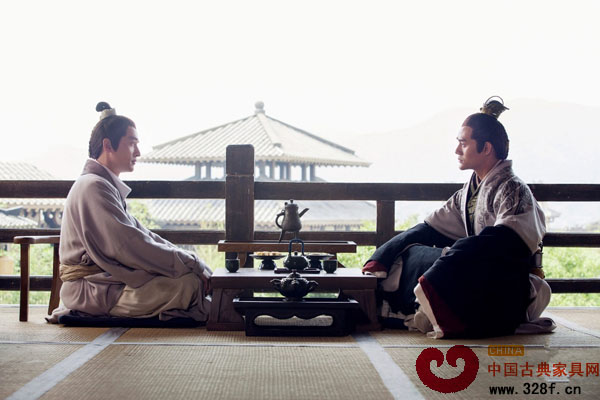 前不久熱映的電視連續(xù)劇《瑯琊榜》,劇中人物在室內(nèi)席地而坐時,身前置一案,后置一憑幾側(cè)靠其上。從劇中人物的生活習(xí)慣,所使用的生活用具可以看出,“遍識天下英雄路,俯首江左有梅郎”中的江左梅郎梅長蘇所處的時期與中國歷史上的戰(zhàn)國時期尤為相近,而這一時期,漆木憑幾頗為流行。