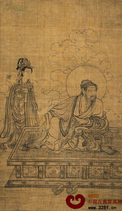 宋朝《維摩居士圖軸》中的憑幾為側(cè)倚憑幾