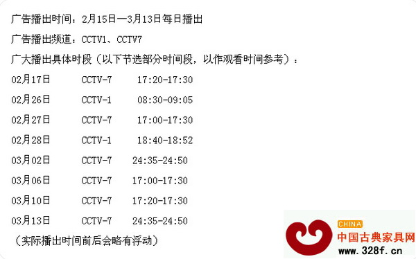 2016年年初則由《第六屆中國(guó)紅木家具品牌大會(huì)》領(lǐng)銜主演,在CCTV2《第一時(shí)間》欄目向全國(guó)電視觀眾展示一眾優(yōu)秀紅木家具企業(yè)的風(fēng)采;而現(xiàn)在春節(jié)剛過,紅木家具再次在央視亮相!