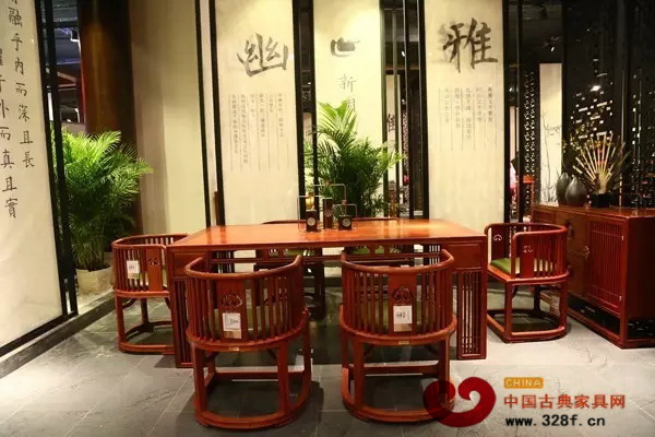 "新中式"家具不是對古典中式的簡化,也不是中式元素的簡單疊加,而是從中國傳統(tǒng)文化的深層內(nèi)涵中挖掘精髓(圖為國壽紅木東莞名家具展展出的新明式紅木家具品牌——世外桃源新品)