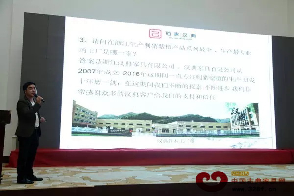 “佰家漢典新古典系列新品發(fā)布會”由漢典家具營銷經(jīng)理洪禮杭帶來?!皾h家風(fēng)華,千年典藏,做中國紅木家具行業(yè)的新古典領(lǐng)跑者”,洪禮杭介紹,新古典四大系列包括華韻系列、意合系列、尚尊系列、福瑞系列,設(shè)計上風(fēng)格獨特,采用了古典工藝與現(xiàn)代軟包結(jié)合,既有古典的家具的味道,又結(jié)合了現(xiàn)代家具的舒適感,為70后、80后所喜歡和認(rèn)可的。