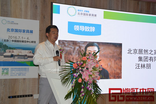 發(fā)布會上北京居然之家投資控股集團(tuán)有限公司董事長汪林朋致辭