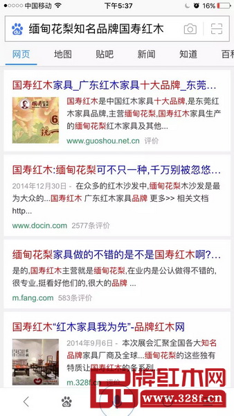 手機(jī)搜索出現(xiàn)的相關(guān)國(guó)壽紅木的信息