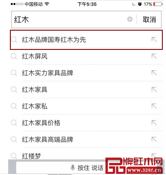 這是品牌的一項(xiàng)軟實(shí)力,尤其是對(duì)于一些如“紅木”、“緬甸花梨”搜索熱度極高的關(guān)鍵詞,如果出現(xiàn)品牌詞,證明消費(fèi)者將這些關(guān)鍵詞與品牌進(jìn)行了非常強(qiáng)的關(guān)聯(lián)印象。比如用手機(jī)在百度搜索引擎搜索“紅木”、“緬甸花梨”時(shí),下拉框第一條自動(dòng)匹配“紅木品牌國(guó)壽紅木為先”、“緬甸花梨知名品牌國(guó)壽紅木”,就表明很多消費(fèi)者在了解紅木家具、緬甸花梨家具品牌時(shí),還搜索了國(guó)壽紅木,從而形成關(guān)聯(lián)關(guān)鍵詞,智能匹配給搜索者。如果這時(shí)候再搜索“國(guó)壽”或者“國(guó)壽紅木”關(guān)鍵詞,下拉框也會(huì)智能匹配大部分搜索者想了解的內(nèi)容:“國(guó)壽紅木材質(zhì)做工好”、“國(guó)壽紅木新中式家具品牌”、“國(guó)壽家具怎么樣”、“緬甸花梨知名品牌國(guó)壽紅木”。可以說百度下拉框?qū)崟r(shí)反映了大家正在搜的熱點(diǎn)信息,而國(guó)壽紅木出現(xiàn)在這么多熱搜詞中,占據(jù)了手機(jī)百度6億用戶搜索“紅木”、“緬甸花梨”、“國(guó)壽”的多個(gè)頭條,其品牌美譽(yù)度及關(guān)注度不言而喻。