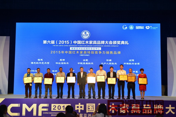 大戶人家(右四)榮獲2015年中國(guó)紅木家具特別競(jìng)爭(zhēng)力銷售品牌