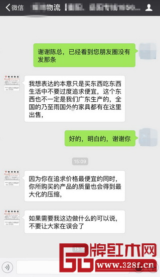 “我本來(lái)想表達(dá)的意思是買任何東西不要過度追求便宜,這個(gè)東西也不一定是我們廣東生產(chǎn)的,全國(guó)的乃至國(guó)外的家具都有在這里出售。”陳先生最后表示,并已經(jīng)于昨天刪除所發(fā)朋友圈信息。