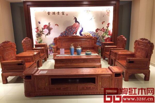 《東非香花梨·富貴呈祥沙發(fā)》是林木軒2016年的最新力作,選用正宗安哥拉小巴花歷時(shí)半年制作而成,工藝上精益求精,款式上取長(zhǎng)補(bǔ)短,以“一木一紋”為生產(chǎn)思路,保證木材花紋的完整性。沙發(fā)通體雕刻孔雀等元素,紋飾精美,寓意吉祥。