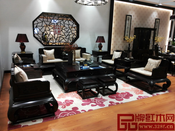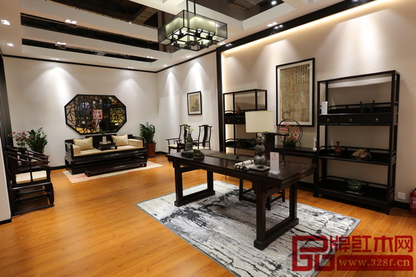 永華紅木展館內(nèi)的木韻系列家具別有韻味