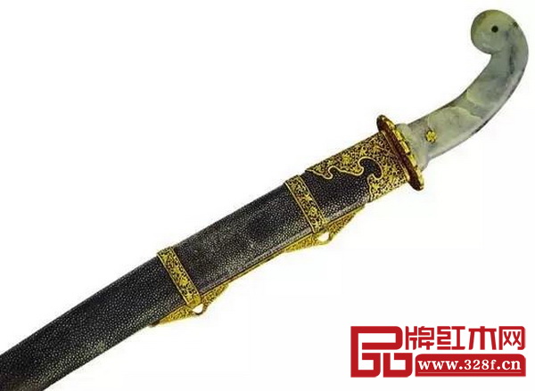 一件乾隆年間御制重器“金桃皮鞘‘天字十七號’‘寶騰’腰刀”在市場上屢屢現(xiàn)身。2006年4月10日,在香港蘇富比拍出4604萬港元;2008年10月8日再次上拍,拍得5890萬港元;2012嘉德秋拍中這件國寶以4830萬元(含傭金)價格被一位澳門買家收入囊中,同場的“天字十二號”以120萬美元拍出。(來源:品牌紅木網 張星∕文 梁曉珩∕編輯)