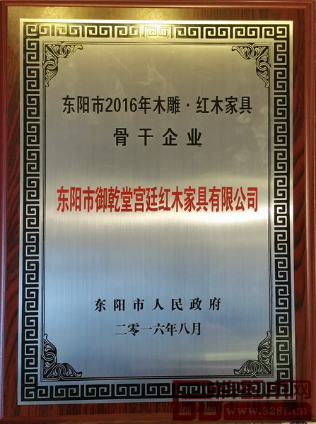 御乾堂榮獲東陽(yáng)市2016年木雕·紅木家具骨干企業(yè)