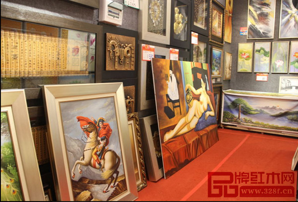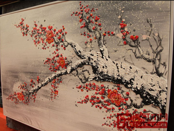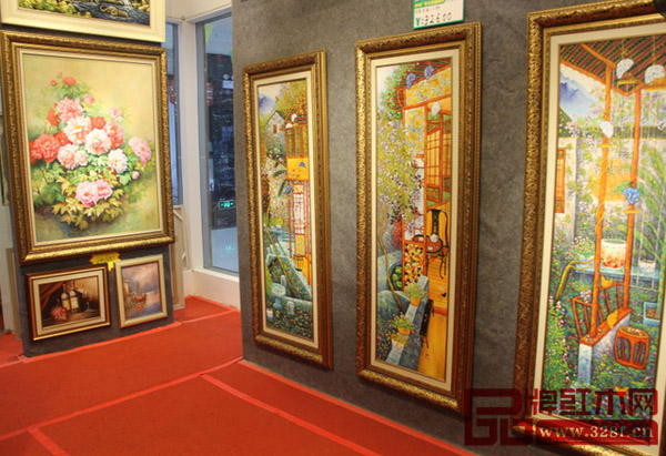 春緣畫廊則帶來(lái)各種油畫,既有像黃河、長(zhǎng)城、紅土地之類氣勢(shì)磅礴的大手筆,也有如向日葵、牡丹花、梅蘭竹菊等精美裝飾畫,更有表現(xiàn)春、夏、秋、冬等季節(jié)的清秀雅致、中西結(jié)合的條幅……