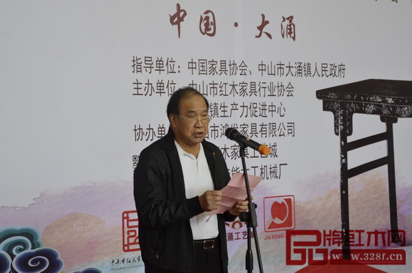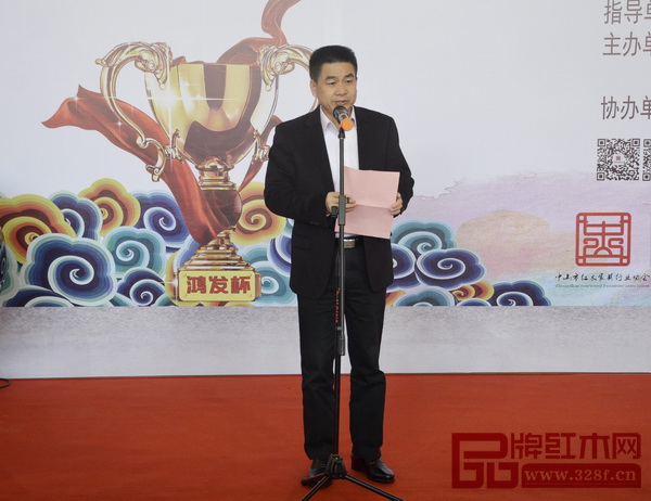 中山市紅木家具行業(yè)協(xié)會(huì)會(huì)長(zhǎng)、鴻發(fā)家具董事長(zhǎng)蕭照興代表主辦方致辭