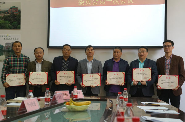 東成紅木設(shè)計(jì)師饒剛強(qiáng)(左四)被聘為廣東省家具工程技術(shù)研究中心技術(shù)委員會(huì)委員