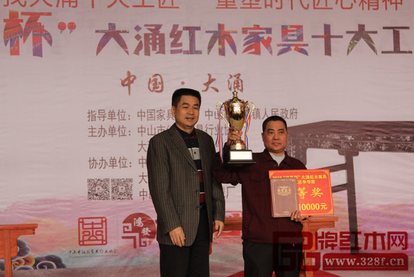 同時,姜恒夫代表組委會為本次大賽的協(xié)辦單位:中山市鴻發(fā)家具有限公司、中山市大涌紅木家具工藝城、中山市佳能木工機械廠,頒發(fā)了紀念牌匾。大涌鎮(zhèn)鎮(zhèn)長賀修虎、鎮(zhèn)黨委委員歐陽凱、中山市紅木家具行業(yè)協(xié)會會長蕭照興分別為獲得一二三等獎的選手頒獎,一二三等獎選手將分別獲得10000元、5000元和2000元的獎金。