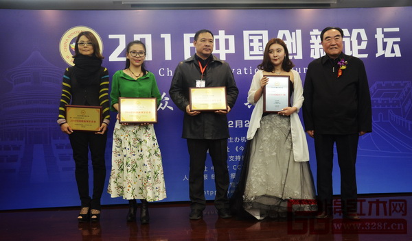 戴為紅木董事總經(jīng)理翁肖尤(左三)代表企業(yè)上臺(tái)接受“2016中國創(chuàng)新領(lǐng)軍企業(yè)”的授牌