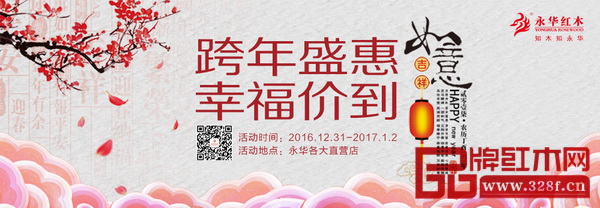 時光荏苒,白駒過隙。2016年悄然告退,2017年輕聲走來。值此元旦佳節(jié)即將來臨之際,廣州市番禺永華家具有限公司(以下簡稱永華紅木),特于2016年12月31日—2017年1月2日,推出系列優(yōu)惠活動回饋廣大新老客戶朋友們一直以來的支持與信賴。