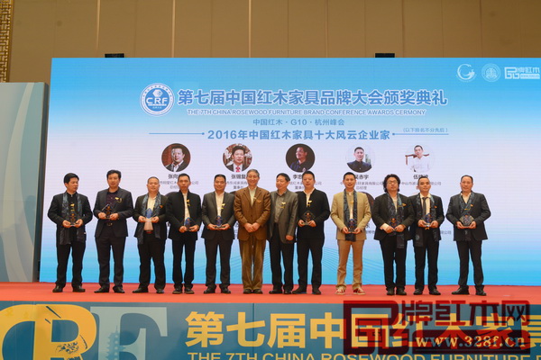 紅古軒總經(jīng)理吳赤宇(右四)榮獲“2016中國紅木家具十大風(fēng)云企業(yè)家”