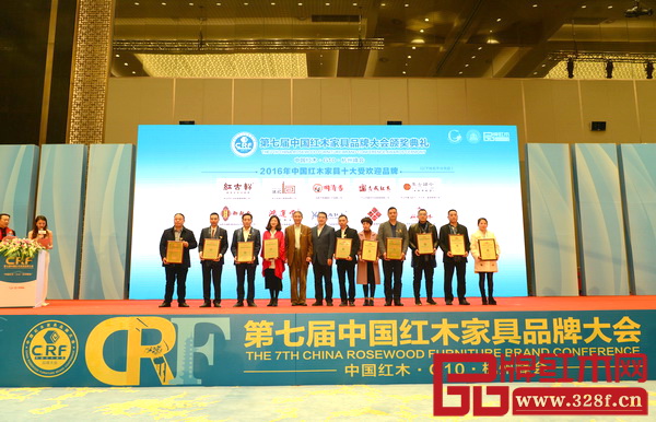 萬家宜(左一)榮獲“2016年中國紅木家具十大受歡迎品牌”