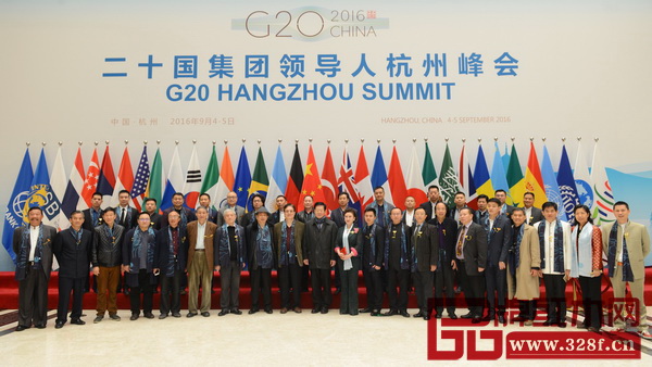 永華紅木副總經(jīng)理邱志坤(后排左二)在G20峰會舉辦地與第七屆中國紅木家具品牌大會重要嘉賓合影留念