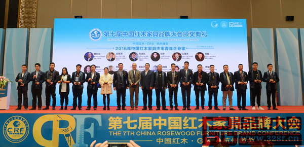 永華紅木董事陳國偉(右一)榮獲“2016年中國紅木家具杰出青年企業(yè)家”稱號